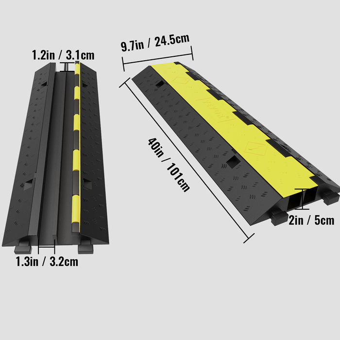 Traditional black+yellow colour provides greater visibility at night and in low light environments. The cable protector ramp incorporates a unique design in its appearance to capture the attention of passer-by and drivers to slow off. 11,000Lbs load capacity ensures that you can drive your car over the ramp without affecting the cables running inside.